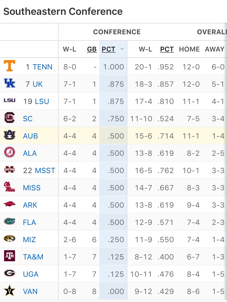 › basketball › 2022Conference Standings - 2022 SEC Men's Basketball ... SEC Conference Standings for Men's College Basketball with division standings, games back, team NET, streaks, and conference NET