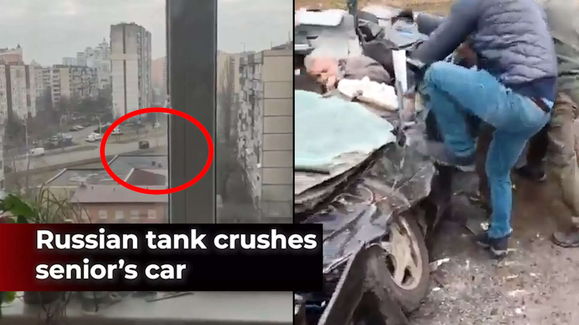 Watch: Russian Tank Goes Out of Its Way to Run Over Civilian Car in... Harrowing footage shows a Russian tank flattening a passenger car on the outskirts of Ukraine's capital — with a civilian inside who appeared to miraculously survive. Video of the shocking moment posted online early Friday showed the tank swerving to drive over the car in Kyiv's Obolon district...