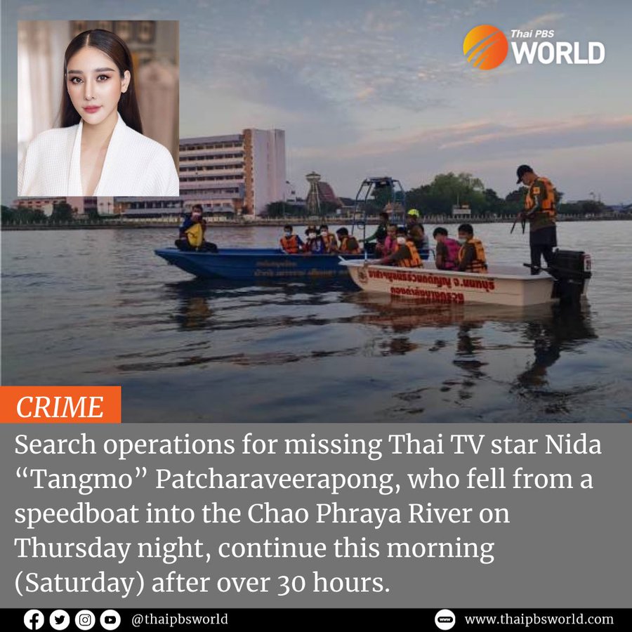 Actress still missing after falling off boat 25.2.2022 · Rescuers were continuing the search for TV actress Nida "Tangmo" Patcharaveerapong, who fell from a speedboat into the Chao Phraya River near Rama VII Bridge on Thursday night. Pictures of Thai actress Tangmo Nida go viral after police ... Thai actress Tangmo Nida, who went missing a couple of days back after falling in the Chao Phraya River, was found dead by a rescue team on February 27, 2022. Her pictures are doing the rounds on social media. She was 37 and her brother was first to inform the rescue teams, who fished out the body from the water. He identified her dead body from her clothes and accessories and thanked everyone ...