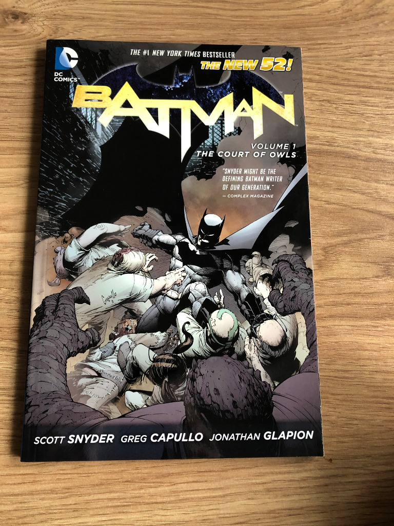 Amazon.com: Batman Vol. 1: The Court of Owls (The New 52 ... Court of Owls starts a brilliant team that I wish the modern Rebirth Batman comics were like. While Tom King writes a good story, he ain't got nothing on Snyder snarkiness and serious stories. Greg Capullo's artwork perfectly compliments Snyder's writing and the action shown is some of the most intense stuff seen in a Batman comic.