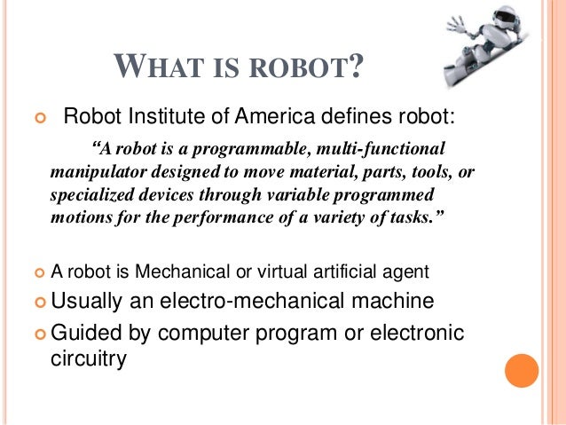 (PDF) Introduction to Robotics - ResearchGate Robotics can ease peoples life, in the industrial and home environment. When talking about homes, robot may assist people in some domestic and tasks, done in repeat.