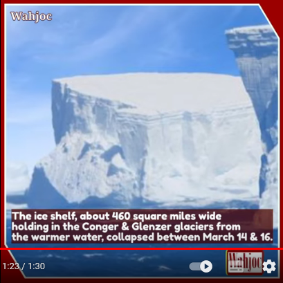 Human-Driven Climate Crisis: East Antarctica Ice Shelf ... Ann Arbor (Informed Comment) - The Associated Press reports that the Conger/Glenzer ice shelf in East Antarctica has collapsed. The event was caught on satellite video, and it is the first such collapse known to have occurred on the east coast of Antarctica, which had been thought to be more stable and less affected by human-caused global heating than the west.
