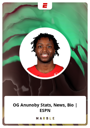 OG Anunoby Stats, News, Bio | ESPN 3.7. News: 1 day ago Anunoby (thigh) will miss at least the Raptors' next two games, Michael Grange of SportsNet reports. Spin: The versatile forward will miss Thursday's game against Philly and Friday's game against Houston as he continues to deal with what's apparently a severely bruised right quad. The hope is that he can get back on the ...